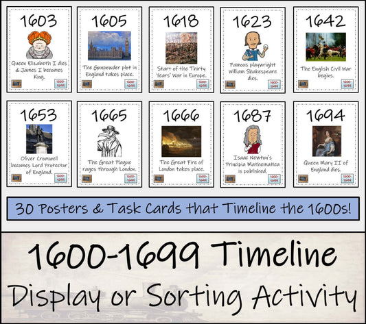 1600 to 1699 Timeline Activity & Classroom Display