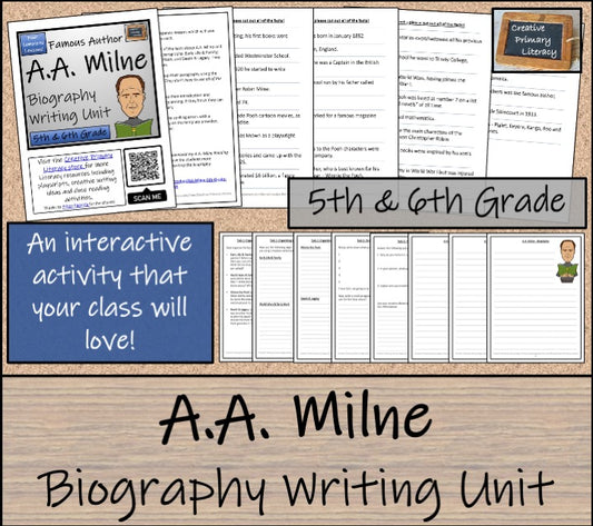 A.A. Milne Biography Project & Writing Unit | 5th Grade & 6th Grade