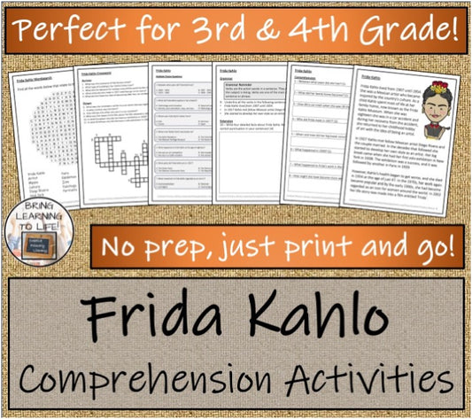 Frida Kahlo Close Reading Comprehension Activities | 3rd Grade & 4th Grade