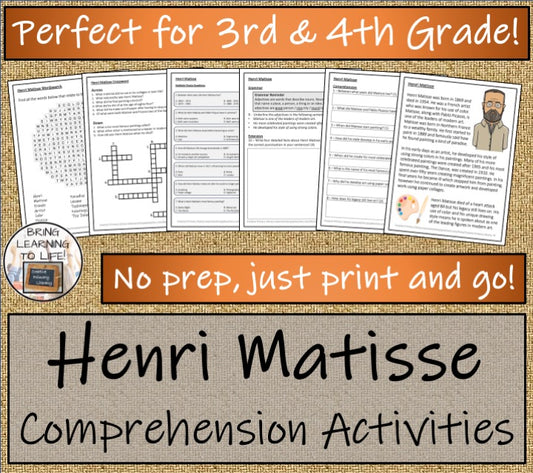 Henri Matisse Close Reading Comprehension Activities | 3rd Grade & 4th Grade