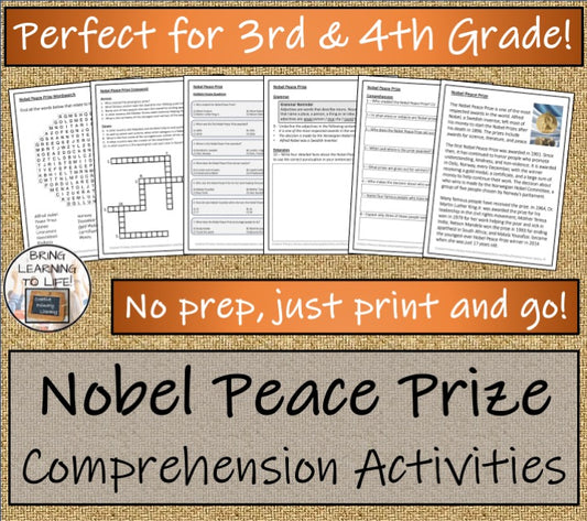 Nobel Peace Prize Close Reading Comprehension Activities | 3rd Grade & 4th Grade