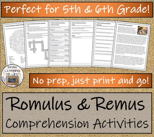 Romulus and Remus Close Reading Comprehension Activities | 5th Grade & 6th Grade