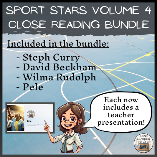 Sport Stars Volumes 1-4 Close Reading Comprehension Bundles | 5th & 6th Grade