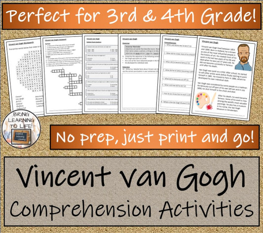 Vincent van Gogh Close Reading Comprehension Activities | 3rd Grade & 4th Grade