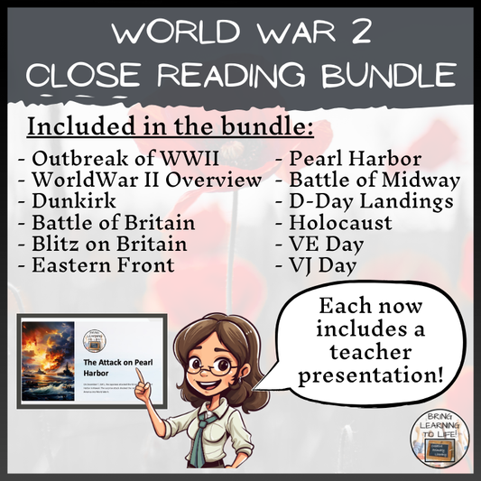 World War II Close Reading Comprehension Activity Bundle | 5th-6th Grade