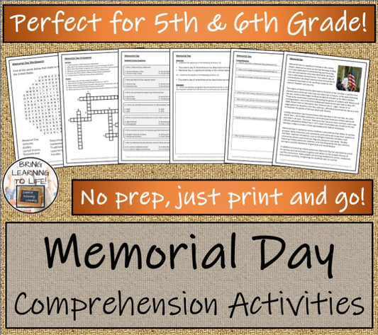 Memorial Day Close Reading Comprehension Activities | 5th Grade & 6th Grade