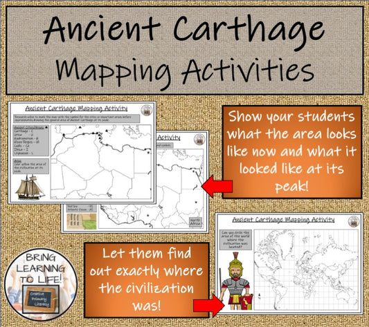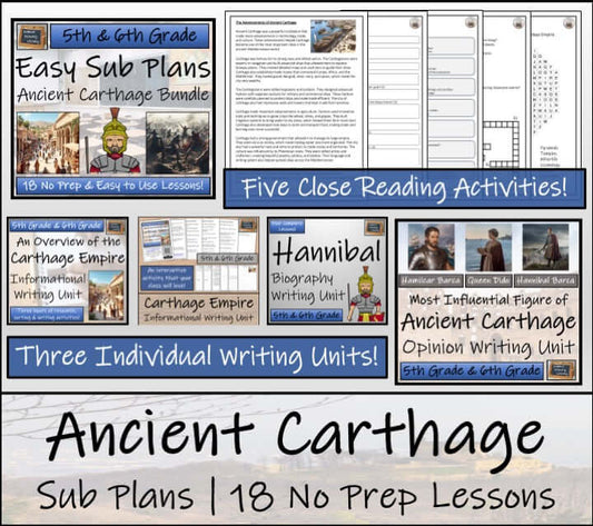 Resources that cover some of the key events and famous figures from the Ancient Carthaginian Empire. Activities look into the Punic Wars, Hannibal, key advancements from the era, and the downfall of the powerful empire.