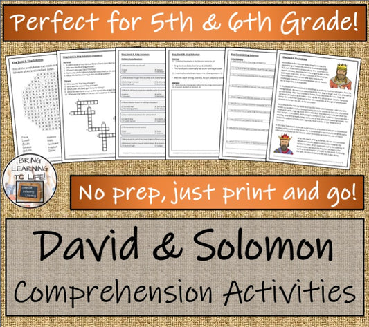 King David & King Solomon Close Reading Activities | 5th Grade & 6th Grade