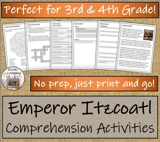 Aztec Emperor Itzcoatl Close Reading Comprehension Activities | 3rd & 4th Grade