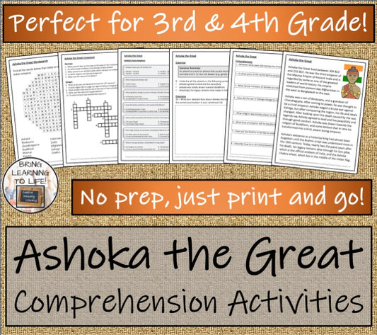 Ashoka the Great Close Reading Comprehension Activities | 3rd Grade & 4th Grade