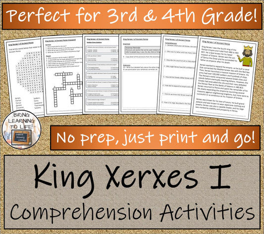 King Xerxes I Close Reading Comprehension Activities | 3rd Grade & 4th Grade