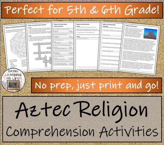 Religion in the Aztec Empire Close Reading Comprehension | 5th & 6th Grade