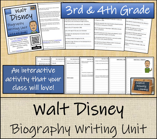Walt Disney Biography Project & Writing Unit | 3rd Grade & 4th Grade