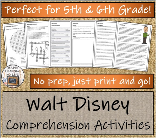 Walt Disney Close Reading & Biography Bundle | 5th Grade & 6th Grade