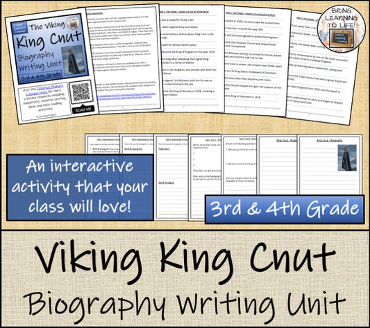 Viking King Cnut Biography Writing Unit | 3rd Grade & 4th Grade