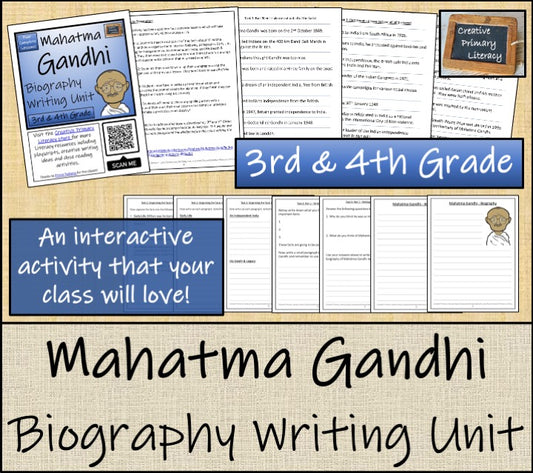 Mahatma Gandhi Biography Writing Unit | 3rd Grade & 4th Grade