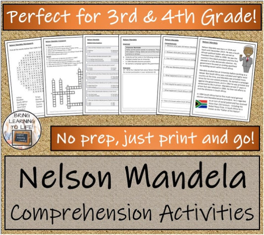 Nelson Mandela Close Reading & Biography Bundle | 3rd Grade & 4th Grade