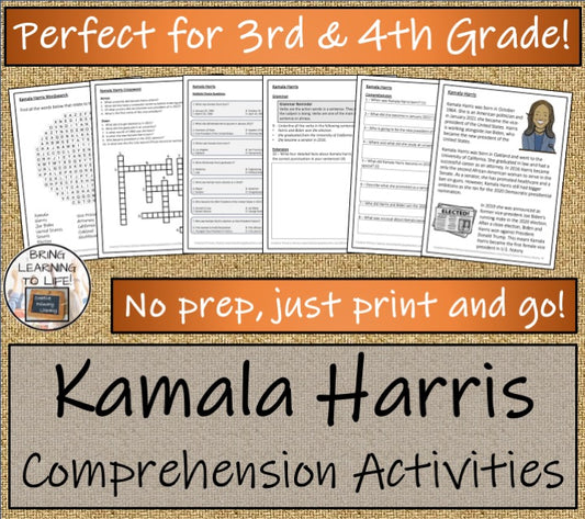 Kamala Harris Close Reading Comprehension Activities | 3rd Grade & 4th Grade