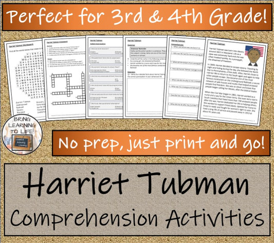 Harriet Tubman Close Reading Comprehension Activities | 3rd Grade & 4th Grade