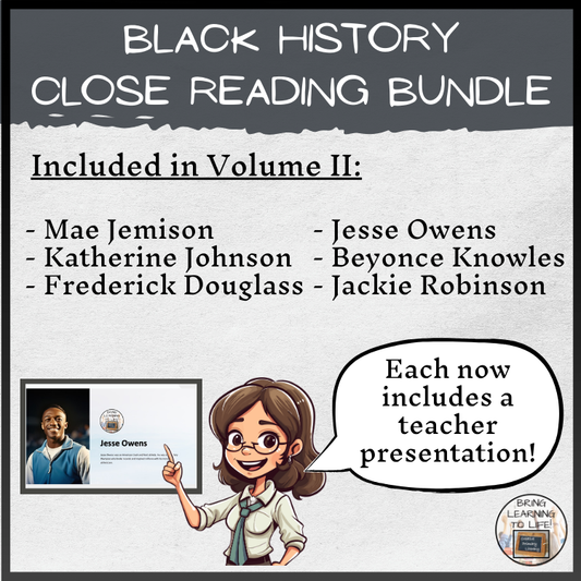 Black History Volumes 1 & 2 Close Reading Comprehension Bundles 3rd & 4th Grade