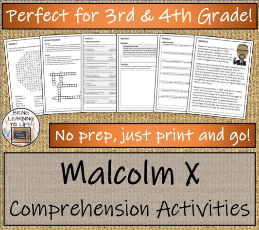 Malcolm X Close Reading Comprehension Activities | 3rd Grade & 4th Grade