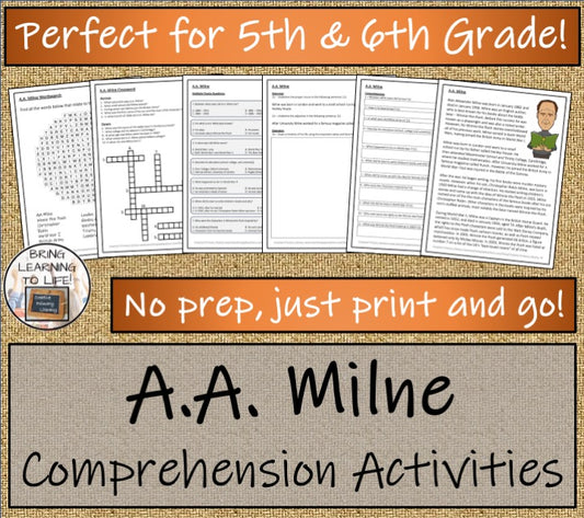 A.A. Milne Close Reading Comprehension Activities | 5th Grade & 6th Grade