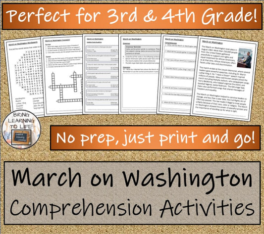March on Washington Close Reading Comprehension Activities | 3rd & 4th Grade