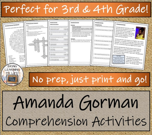 Amanda Gorman Close Reading Comprehension Activities | 3rd Grade & 4th Grade