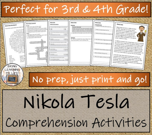 Nikola Tesla Close Reading Comprehension Activities | 3rd Grade & 4th Grade