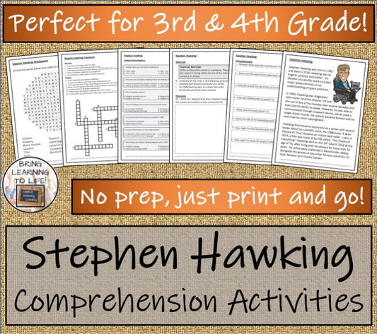 Stephen Hawking Close Reading Comprehension Activities | 3rd Grade & 4th Grade