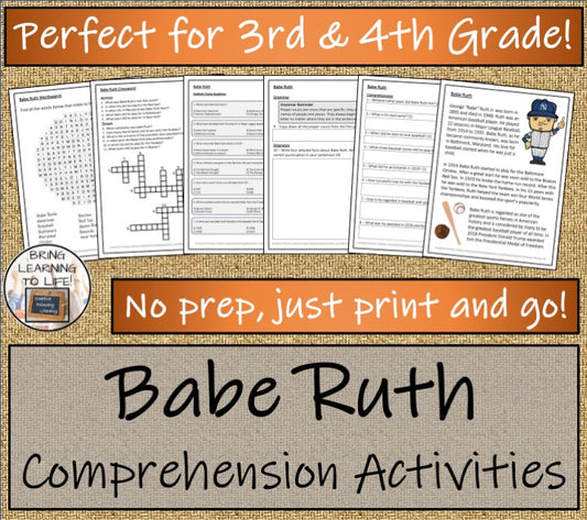 Babe Ruth Close Reading Comprehension Activities | 3rd Grade & 4th Grade