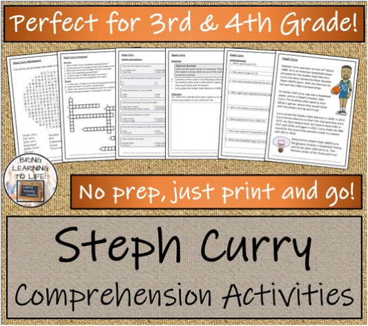 Steph Curry Close Reading Comprehension Activity | 3rd Grade & 4th Grade