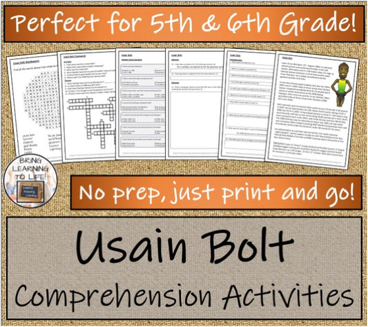 Usain Bolt Close Reading & Biography Bundle | 5th Grade & 6th Grade
