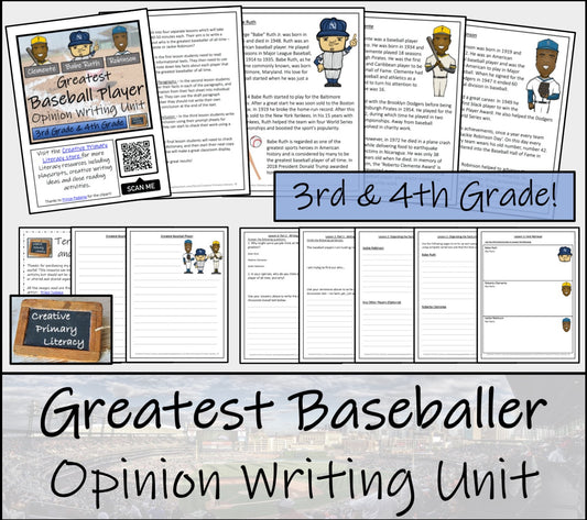 Greatest Baseball Player Opinion Writing Unit | 3rd Grade & 4th Grade