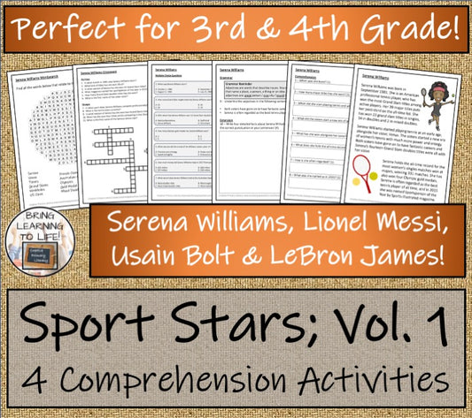 Sport Stars Volume 1 Close Reading Comprehension Bundle | 3rd Grade & 4th Grade
