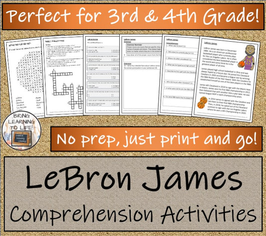 LeBron James Close Reading Comprehension Activities | 3rd Grade & 4th Grade