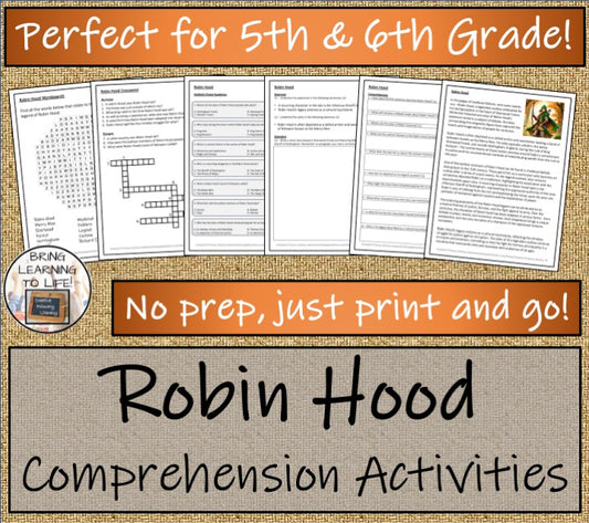 Robin Hood Close Reading Comprehension Activities | 3rd Grade & 4th Grade