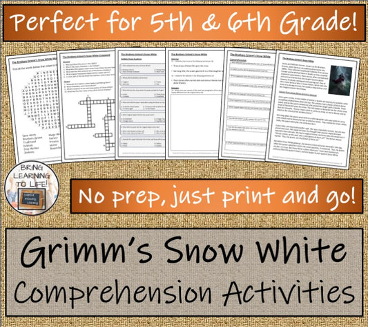 Brothers Grimm's Snow White Reading Comprehension | 5th Grade & 6th Grade