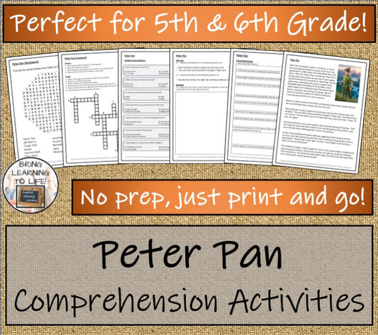 Peter Pan Fiction Reading Comprehension | 5th Grade & 6th Grade