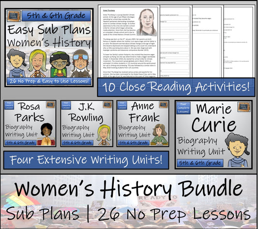 Emergency Sub Plans | Women's History Bundle | 5th Grade & 6th Grade