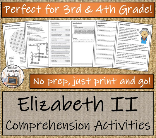 Queen Elizabeth II Close Reading Comprehension Activities | 3rd Grade & 4th Grade