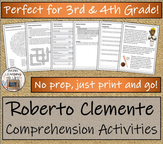 Roberto Clemente Close Reading Comprehension Activities | 3rd Grade & 4th Grade