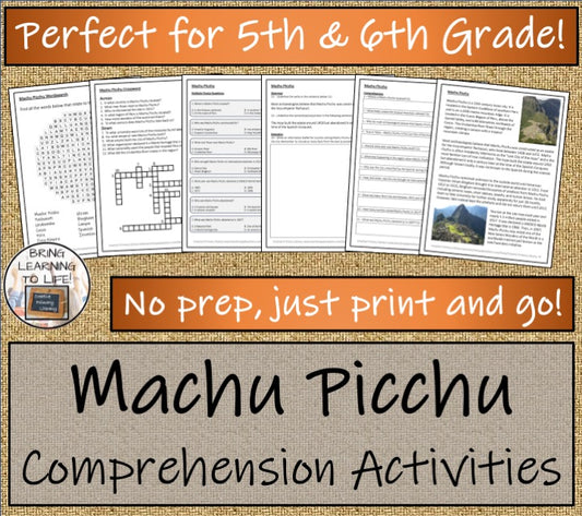 Machu Picchu Close Reading Comprehension Activities | 5th Grade & 6th Grade