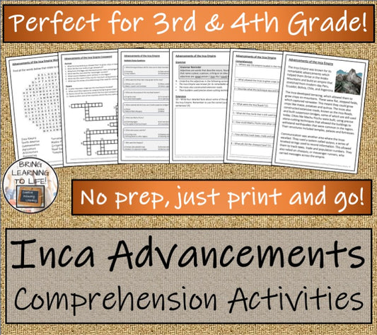 Advancements of Inca Empire Reading Comprehension Activities | 3rd & 4th Grade
