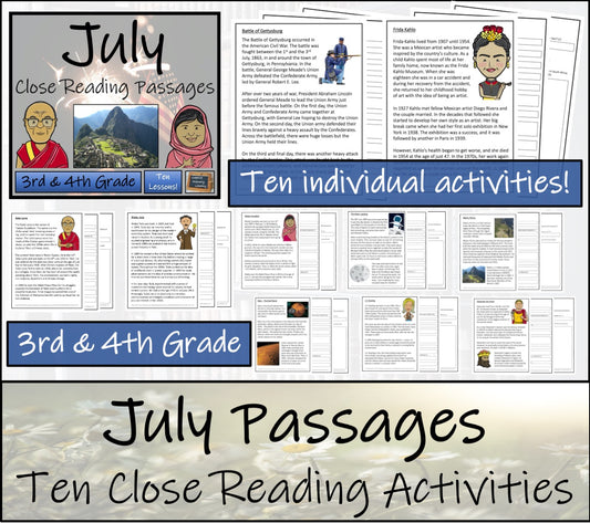 July Close Reading Comprehension Activity Book | 3rd-4th Grade
