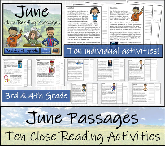 June Close Reading Comprehension Activity Book | 3rd-4th Grade