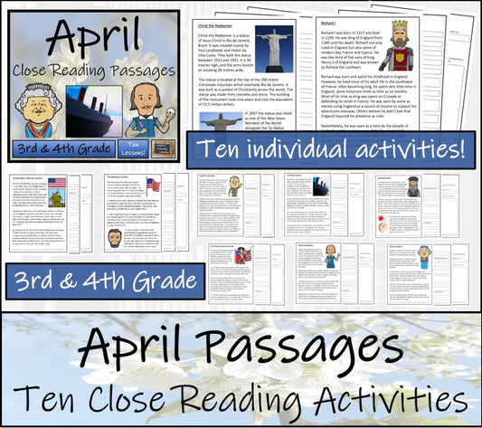 April Close Reading Comprehension Activity Book | 3rd-4th Grade