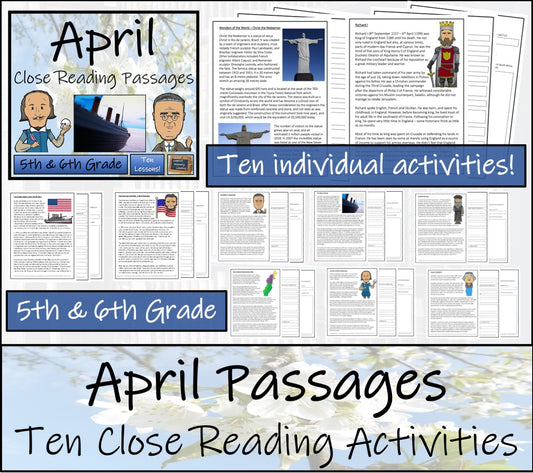 April Close Reading Comprehension Activity Book | 5th-6th Grade
