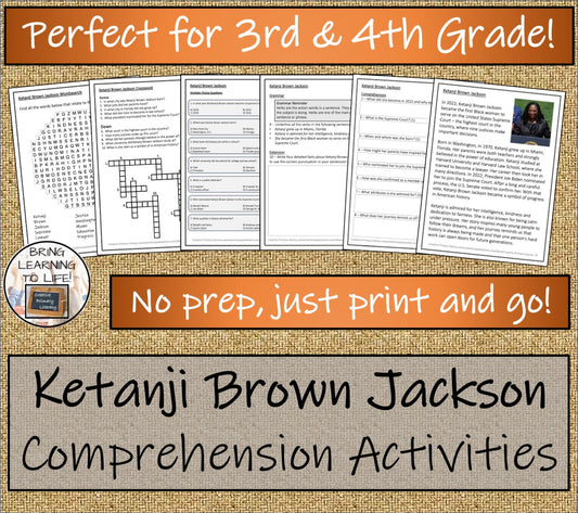Ketanji Brown Jackson Close Reading Comprehension Activities | 3rd & 4th Grade