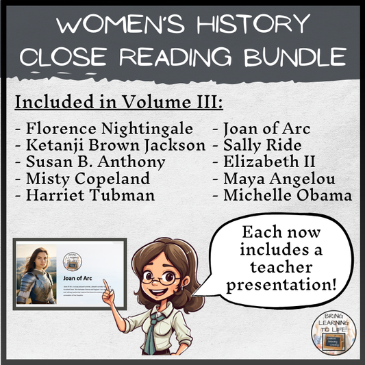 Womens History Vol. 3 Close Reading & Presentation Bundle | 5th & 6th Grade